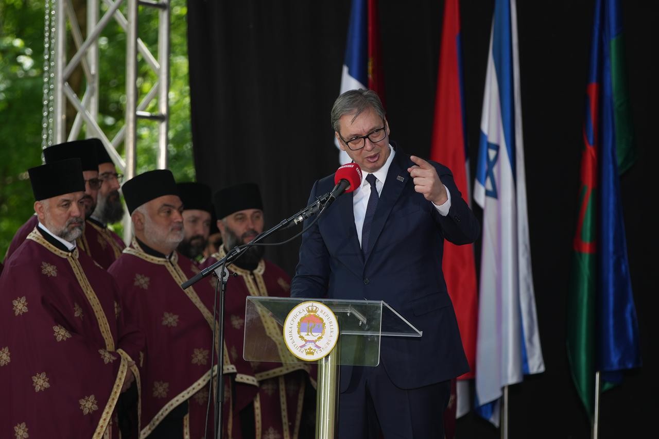 Predsjednik Srbije Aleksandar Vučić danas je tvrdio da je izložen nasilnom pritisku Zapada usmjerenom na njegovo svrgavanje s vlasti, te je najavio da će se tome odlučno oduprijeti, a ponovno je uputio neizravnu kritiku Hrvatskoj, i to zato što ne može doći u Jasenovac.
