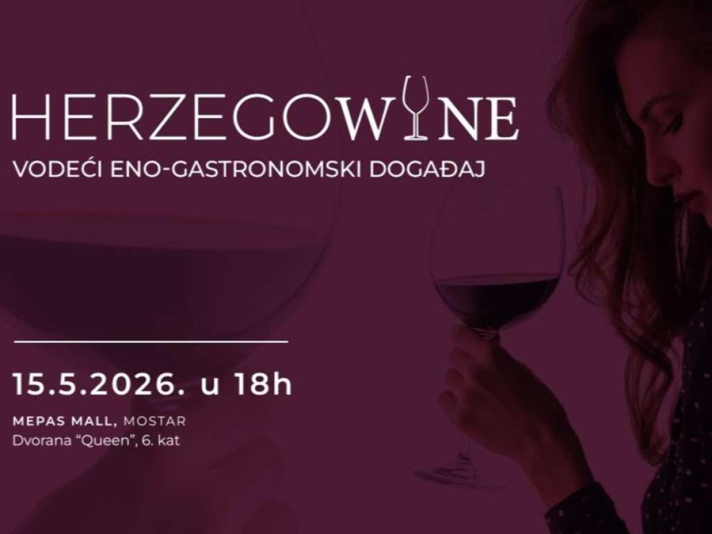 Četvrto izdanje Herzegowine festivala vina održat će se 15. svibnja u Mepas Mallu u Mostaru. Ovogodišnji festival će u dvorani Queen trgovačkog centra Mepas Mall okupiti više od 50 izlagača, vinarija i proizvođača hrane iz Hercegovine, Bosne i Hercegovine te međunarodnih vinskih regija, uključujući Hrvatsku, Italiju, Sloveniju, Srbiju, Crnu Goru i Sjevernu Makedoniju, navodi se u priopćenju iz Udruge Herzegowine.