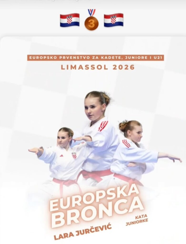 Limassol, Cipar – 7. veljače 2026. – Mlada karatistica Lara Jurčević, članica Karate kluba Vitez, osvojila je brončanu medalju na Europskom prvenstvu za kadete, juniore i U21 u Limassolu!