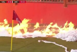 Domaći navijači stvorili su ‘vatrenu’ atmosferu u doslovnom smislu. Ispred njihove tribine zapalile su se trake koje su prethodno ubačene na teren, a plamen se brzo proširio i izazvao ozbiljnu prijetnju.