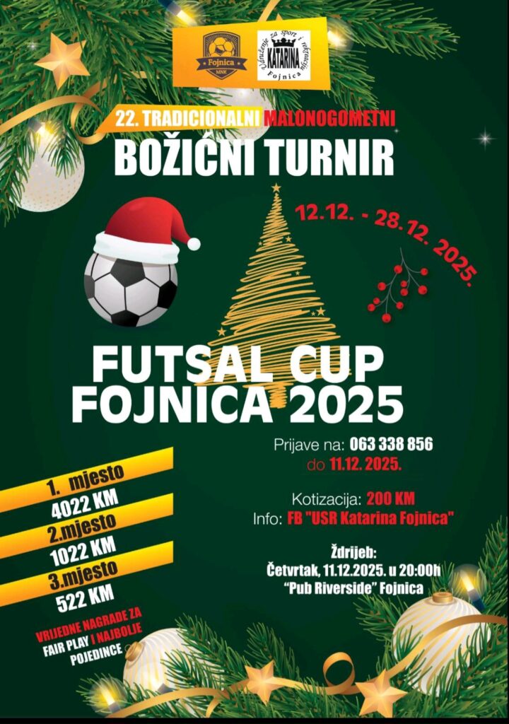 Udruženje za sport i rekreaciju “Katarina Fojnica” organizira Tradicionalni malonogometni Božićni turnir – Futsal Cup Fojnica, ove godine već dvadeset i drugi put.