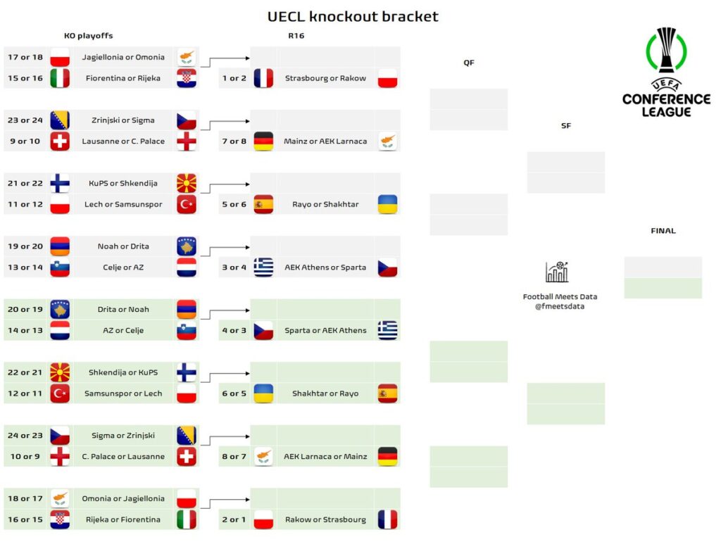 Nogometaši Zrinjskog izborili su plasman u play-off Konferencijske lige gdje će igrati protiv švicarske Lausanne ili engleskog Crystal Palace, a ukoliko naprave podvig i prođu dalje, već je poznato i s kim bi mogli igrati u osmini finala.