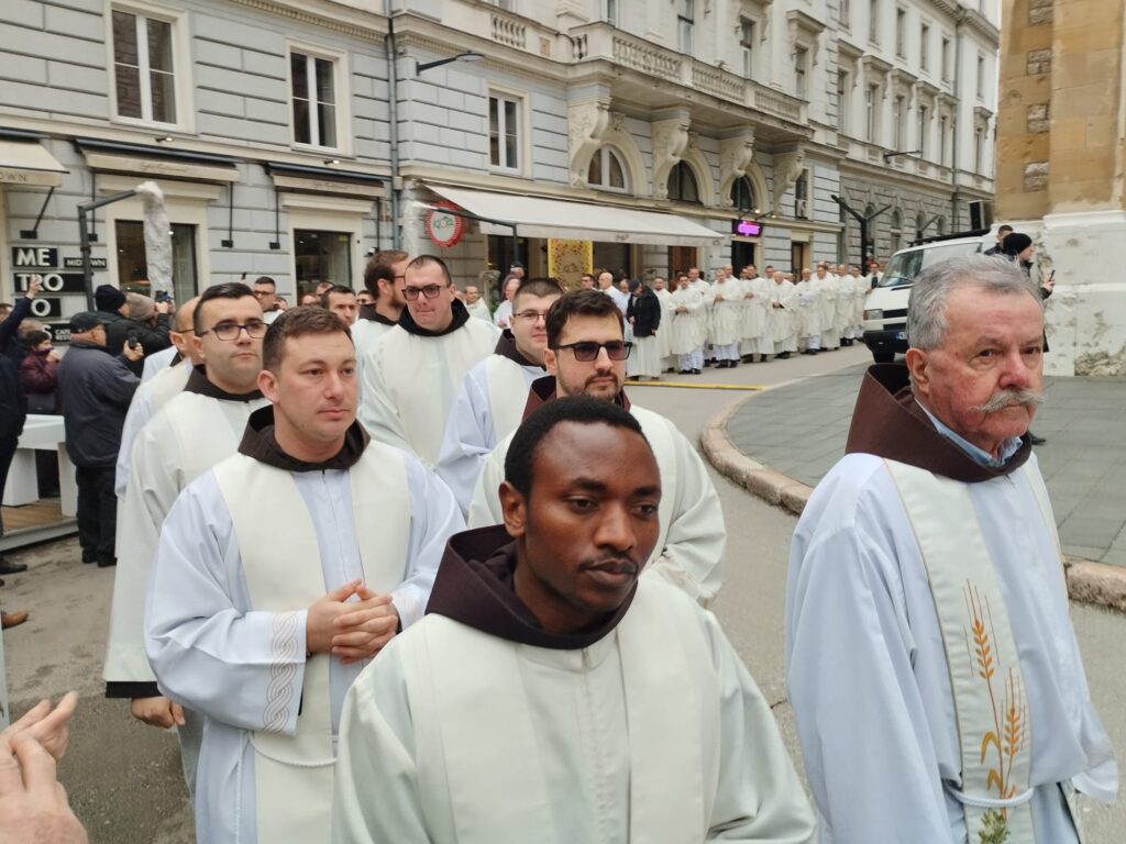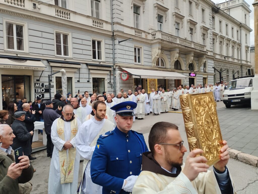 Svečana procesija prema katedrali Presvetoga Srca Isusova krenula je iz Vrhbosanskog bogoslovnog sjemeništa u 9.45 sati, u kojoj sudjeluju svi svećenici, biskupi i nadbiskupi, kao i predstavnici Ministarstva obrane i Oružanih snaga Bosne i Hercegovine.